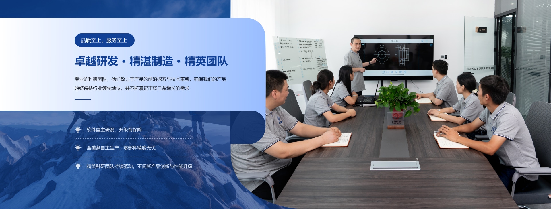 公司擁有一支高水平的研發和制造團隊,包括軟硬件契合的研發、設計和生產,研發和生產了多款行業自動化設備, 并和多家高新技術企業建立了長期的合作關系,業務及影響力遍及整個大陸地區, 成為工業級客戶提升效率、 制造企業價值的長久合作伙伴,在國內領域建立領導地位。